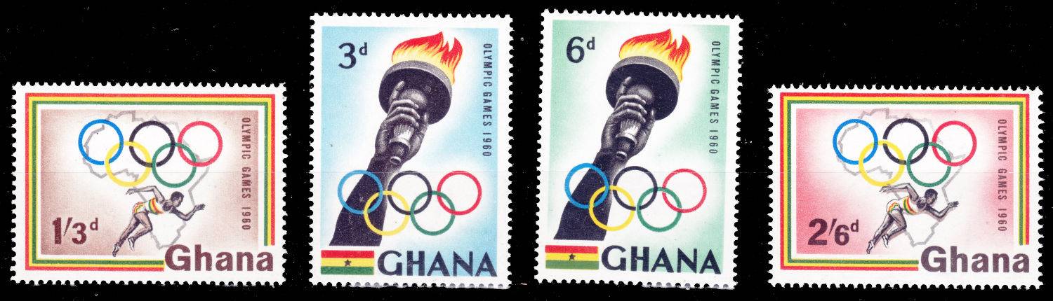 umfasst 4 Briefmarken und ist der erste Satz den Ghana zu den Olympischen Spielen