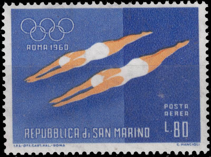 unterschiedlichen Werten und Motiven zu den olympischen Spielen in Rom 1960. San Marino gab