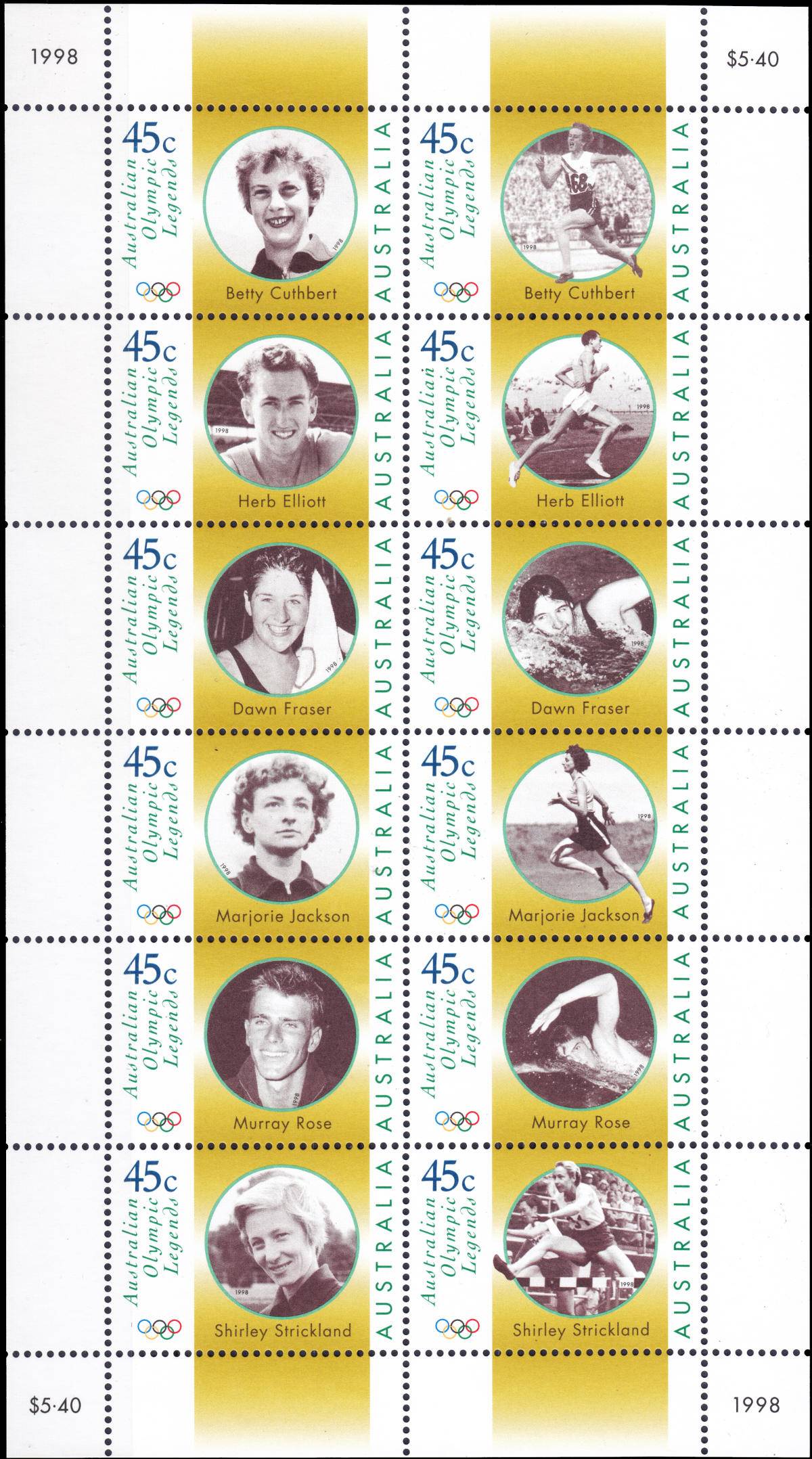 Info: 1998 Australien Olympiasieger Briefmarken Kleinbogen #5820
