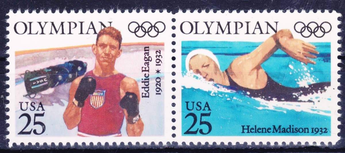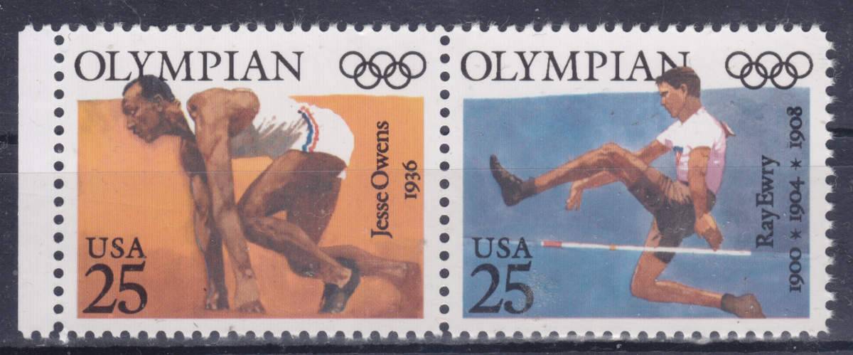 Der erste Briefmarkensatz stammt von den USA 1990 und Zeigt Olympiasieger der USA zu den