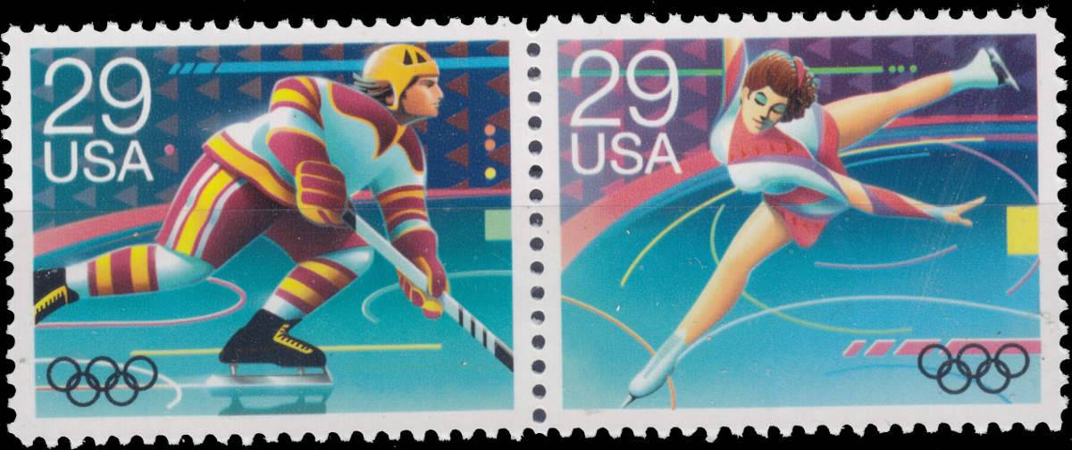 US-Cent Frankaturwert je Briefmarken und den Motiven zu Eishockey, Eiskunstlauf, Eisschnelllauf,