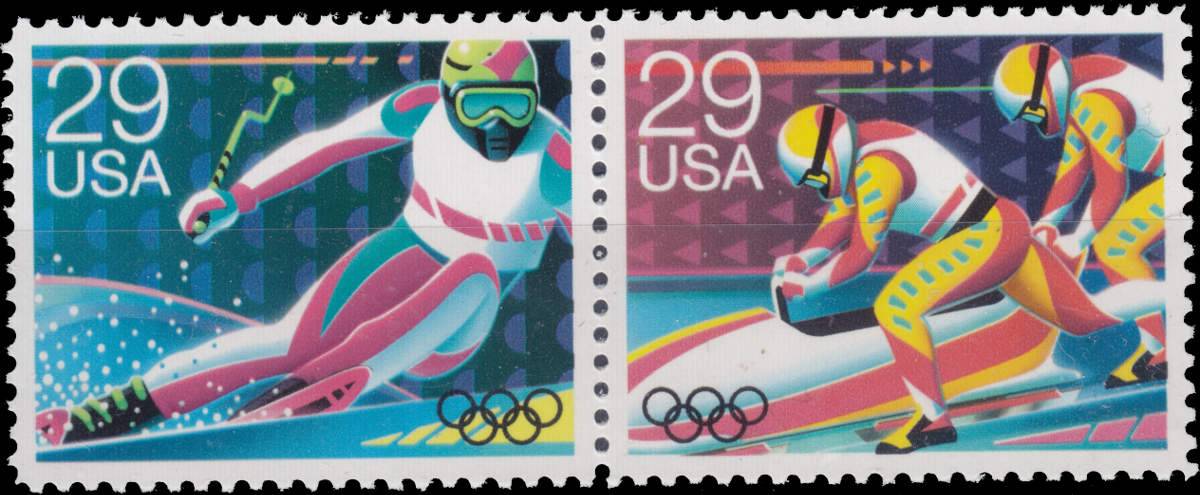 Die letzten 5 Briefmarken stammen von den USA 1992 zu den Winterspielen in Albertville mit 29