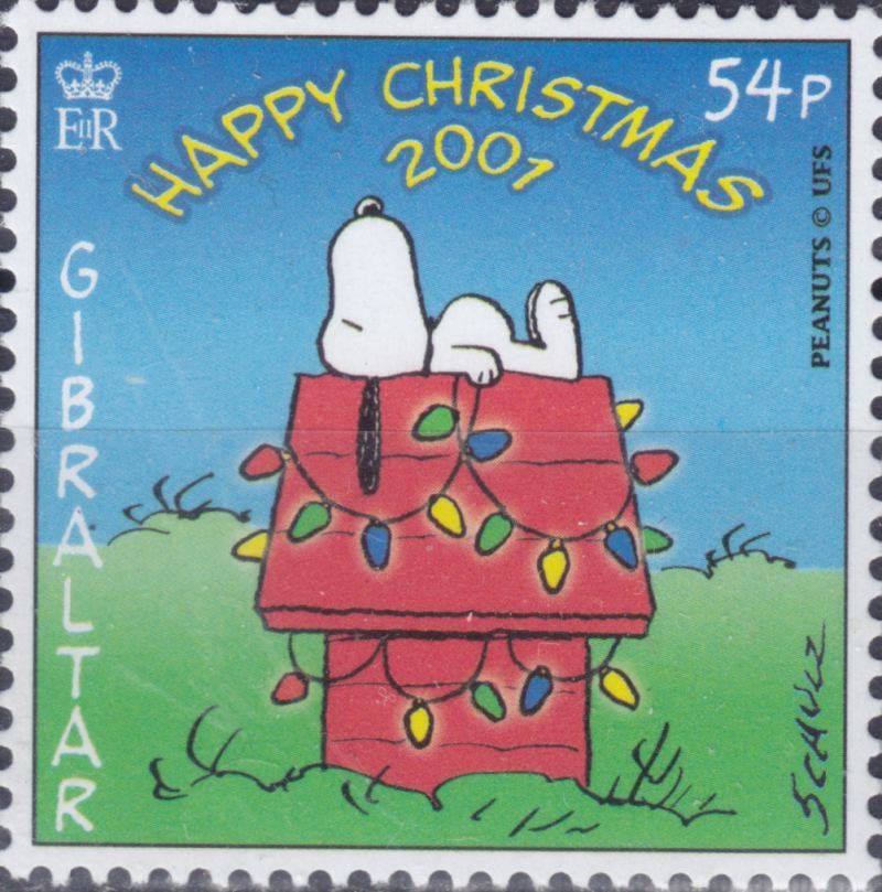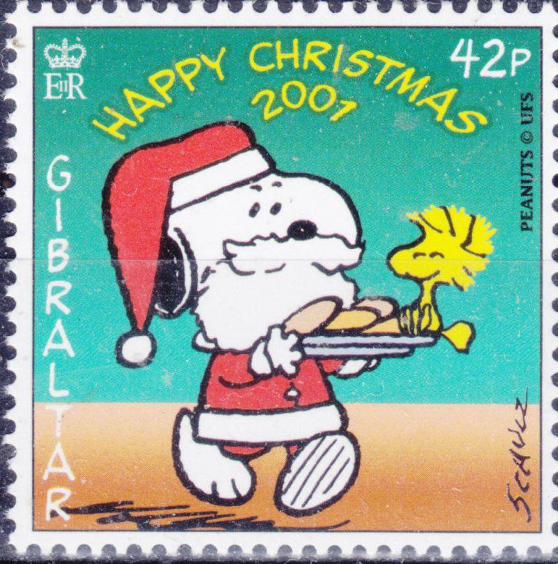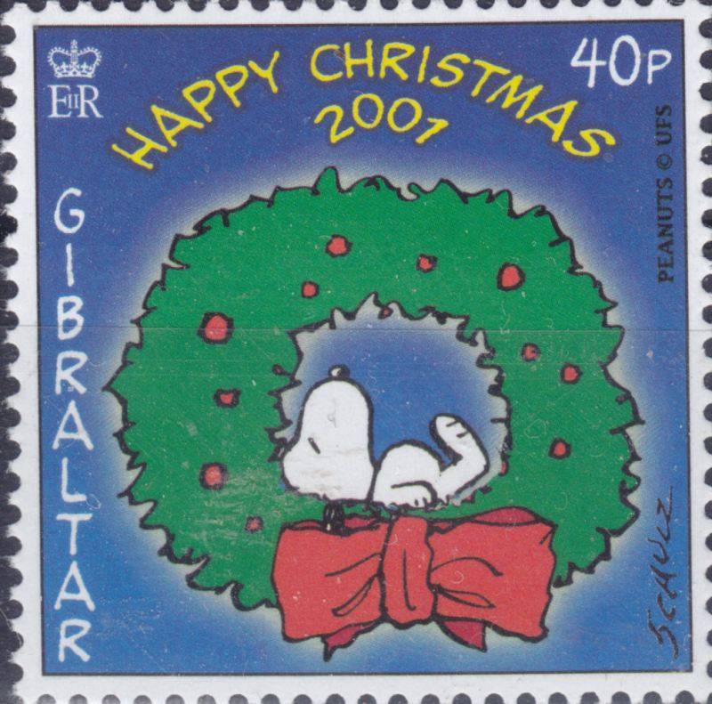 Briefmarken zu Weihnachten 2001 mit Snoopy von Gibraltar 2001:
