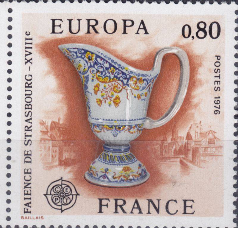 CEPT-Briefmarken 1976 aus Frankreich und Griechenland, zum gemeinsamen Thema Kunsthandwerk in