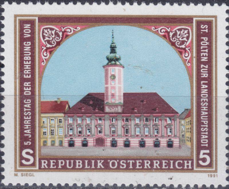 Rathaus, beziehungsweise von jeder Ausgabe einer Briefmarke mit einem Rathaus, sich ein postfrisches