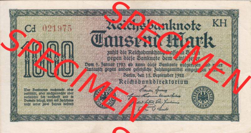 Die Reichsbanknote 15. September 1922 zu 1000 Mark (Tausend Mark) ist