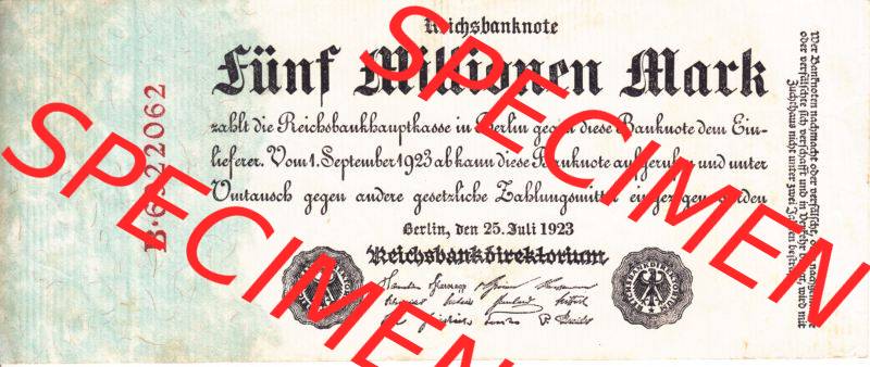 (Fünf-Millionen) Mark (vom 1. September 1923), der deutschen