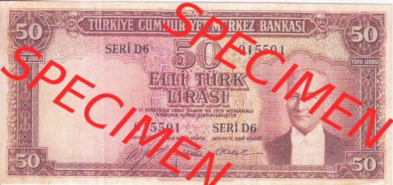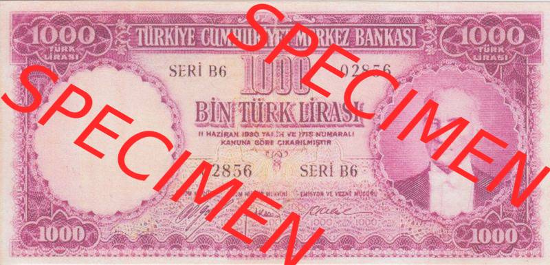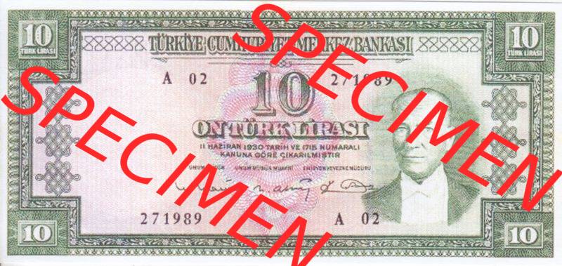 Info: Bilder von wertvollen Banknoten der Türkei 1952-1960