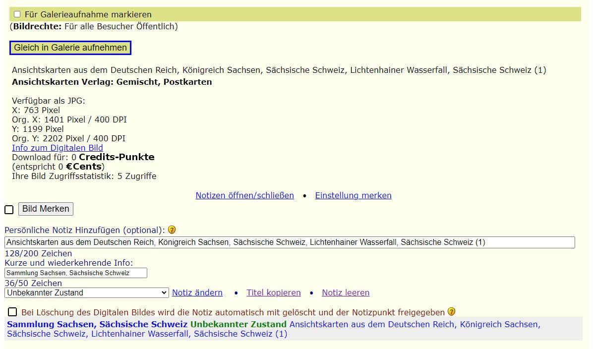 Notizen zum jeweils darüberliegenden Digitalen Bild welches ein Sammlerstück im