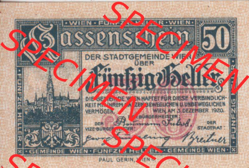 Info: Design der Notgeldscheine von Wien in Österreich #12200