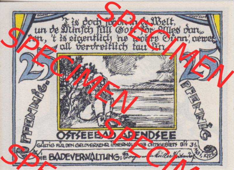 Von Ostseebad Boltenhagen wurde 1921 bis 1922 Reutergeld zu 10 Pfennig, 25 Pfennig und 50