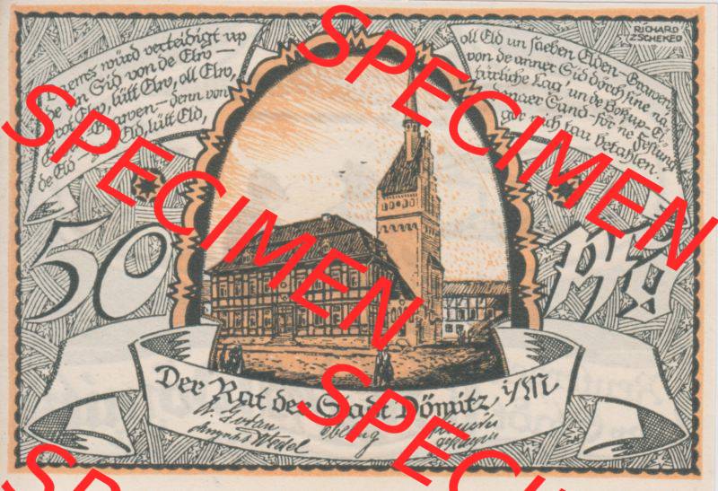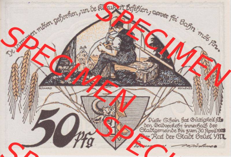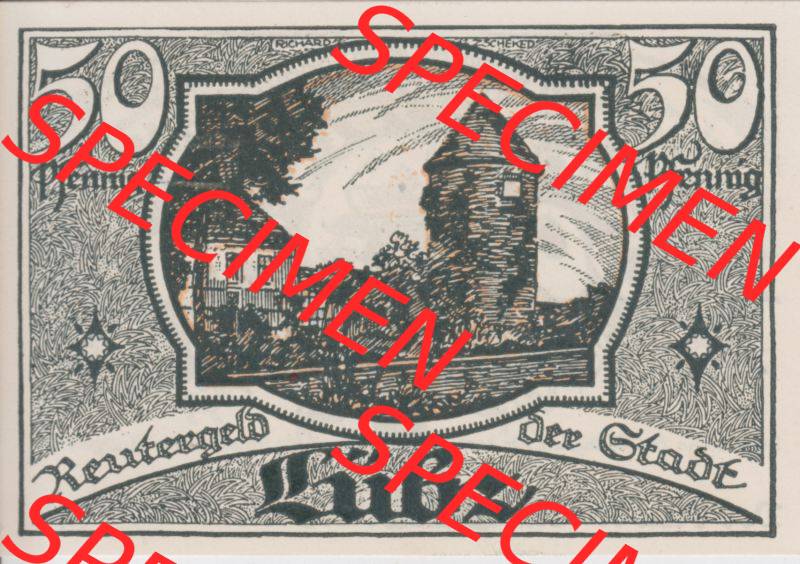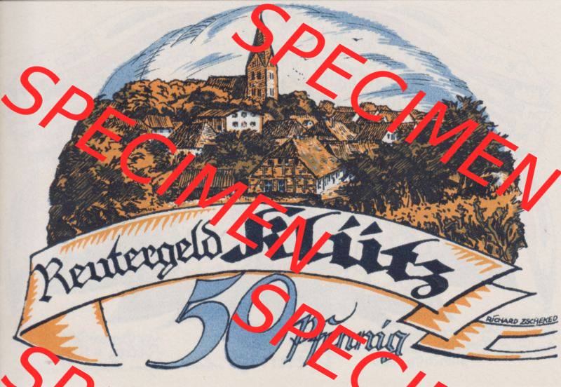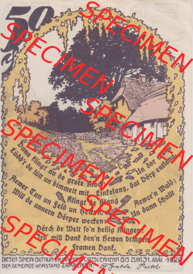 Reutergeld) auf der Rückseite des Reutergeldes vorhanden und der Text auf dem 50 Pfennig