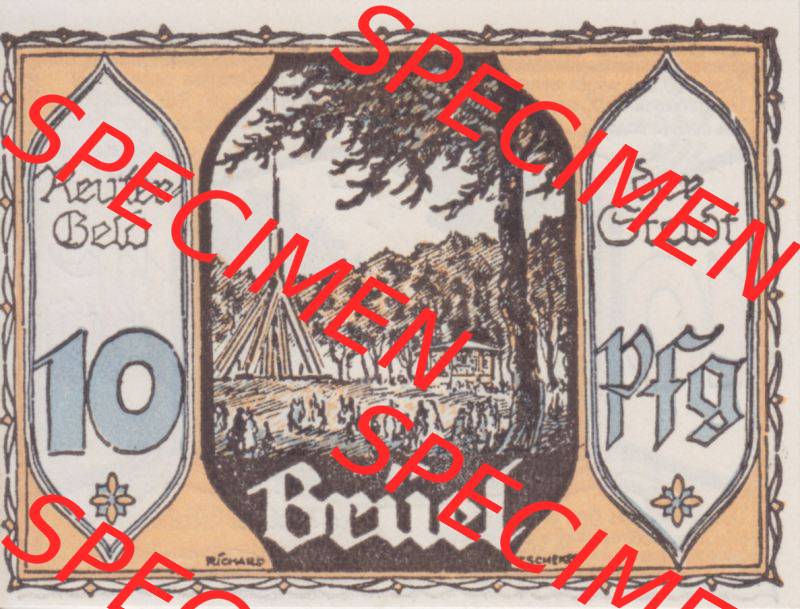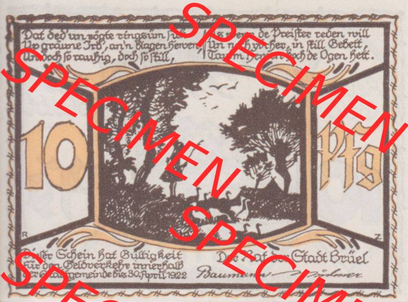 Notgeldscheine Stadt Brüel Reutergeld aus Brüel 10 Pfennig