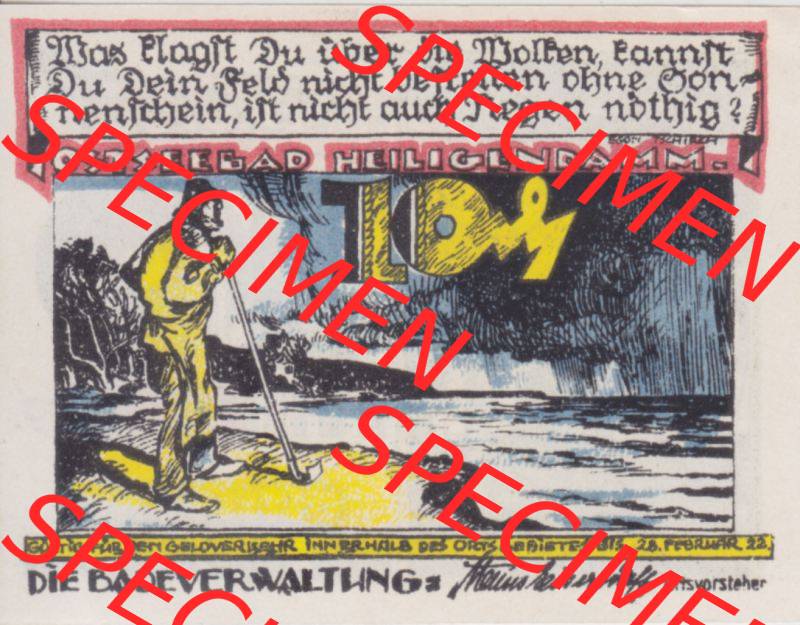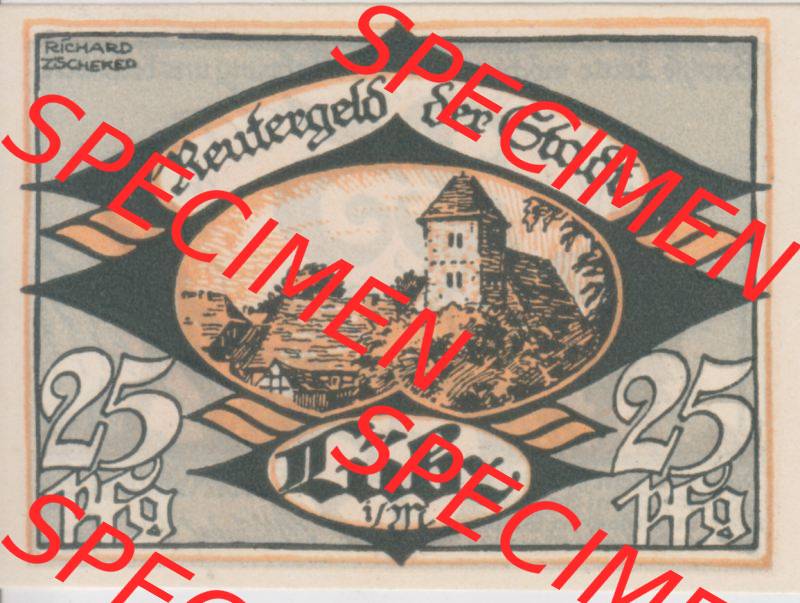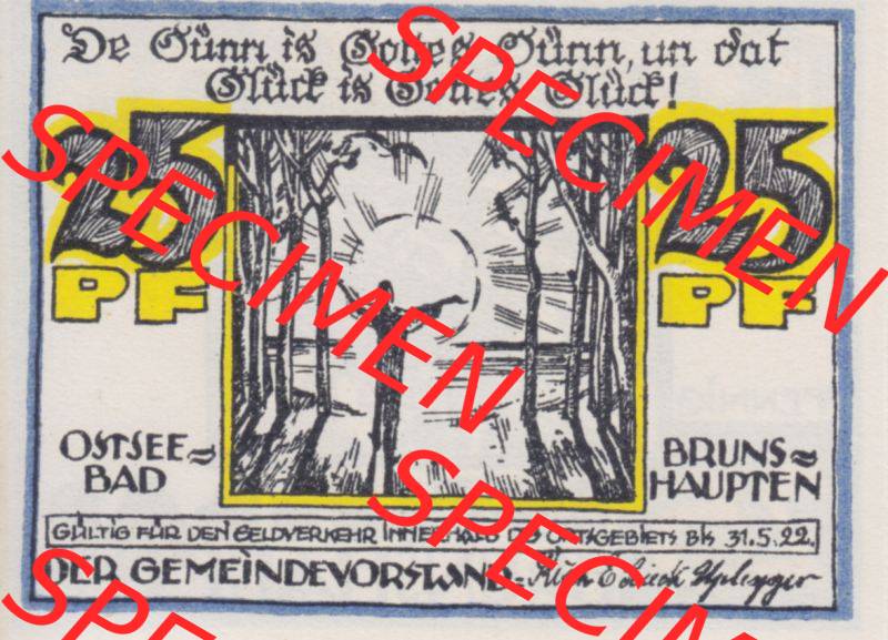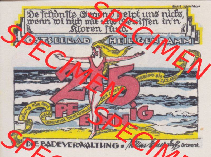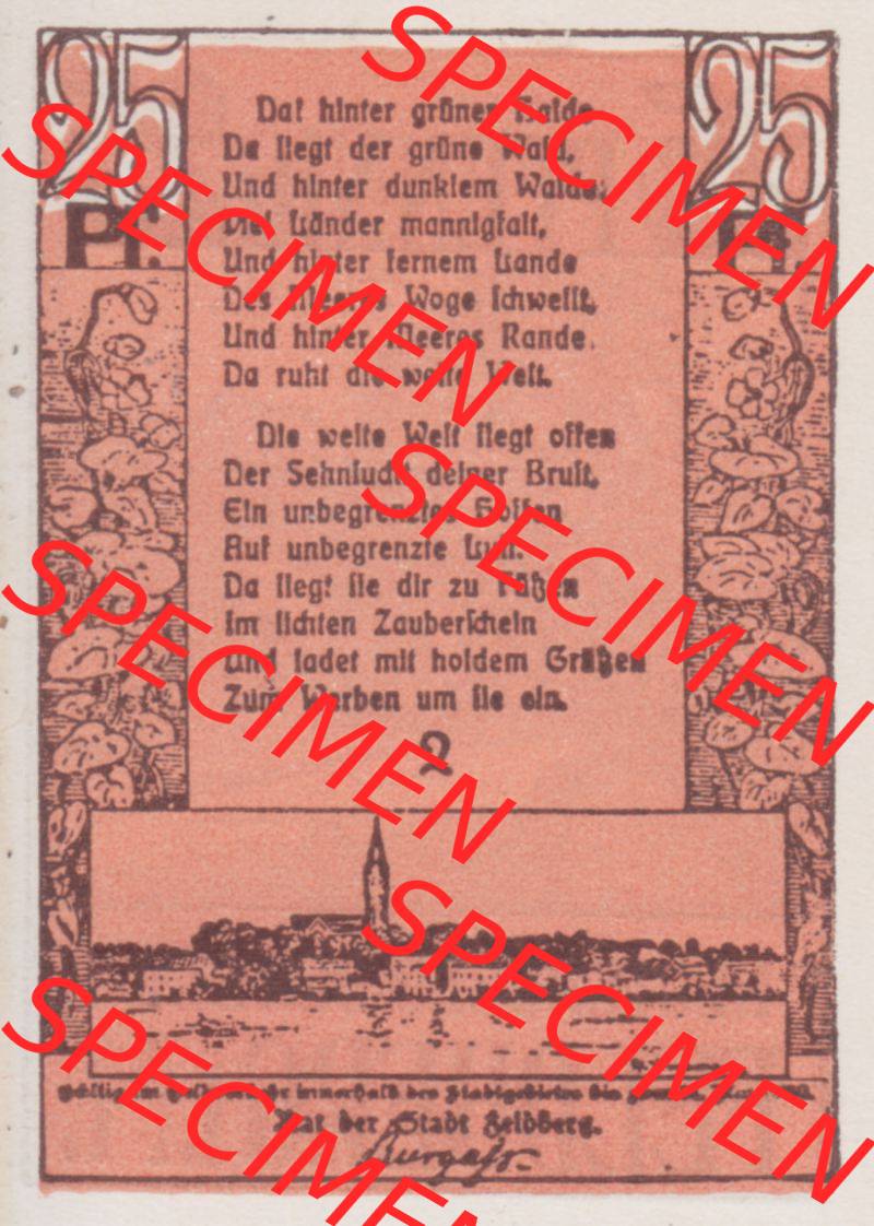 vorhanden und der Text auf dem 25 Pfennig Notgeld lautet "Schöne, alte Zeit! Der