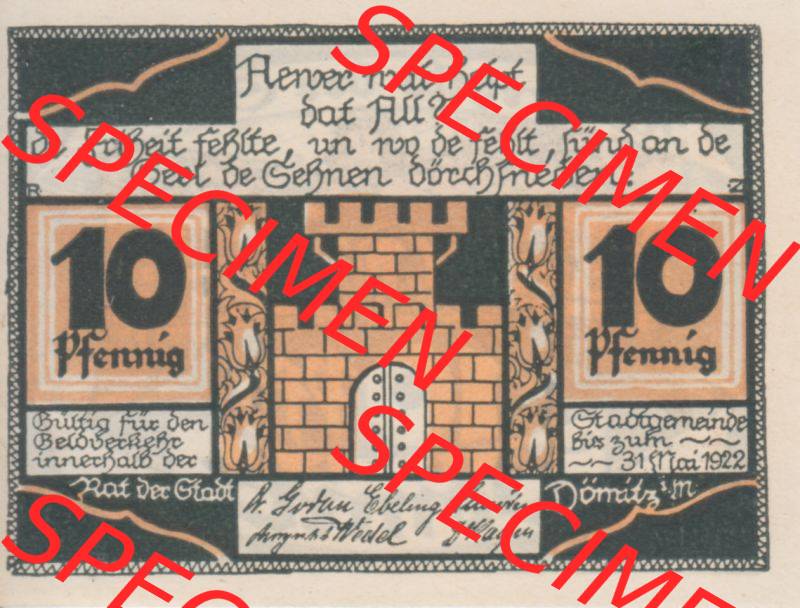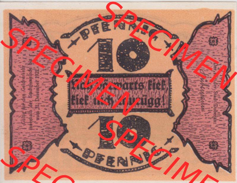 vorhanden und der Text auf dem 10 Pfennig Notgeld lautet "Nah vorwärts kiek, kiek nicht