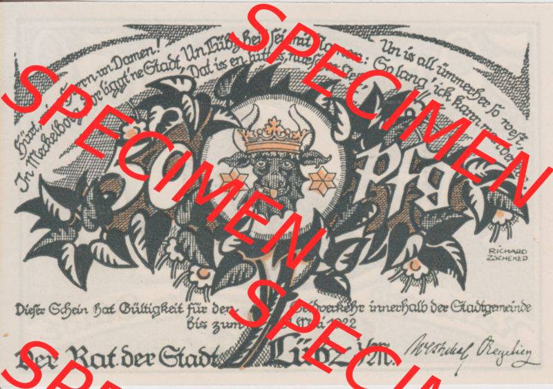 31.12.1921 als Notgeld-Gutschein gültig war. Auf dem Reutergeld sind Texte