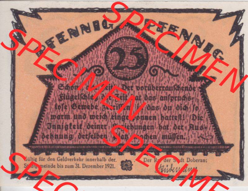 Reutergeld von Bad Doberan 1921 zu 25 Pfennig. Das Reutergeld von Bad Doberan war bis zum
