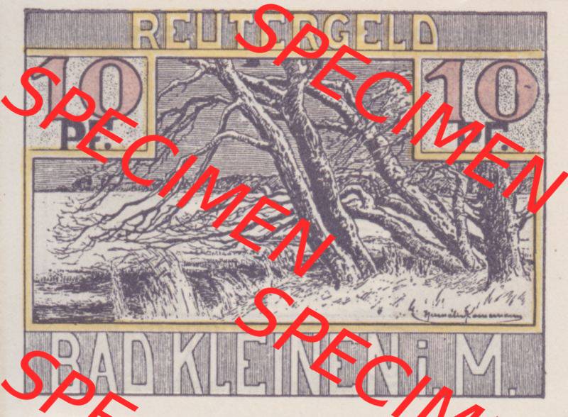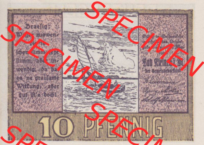 Reutergeld von Bad Kleinen mit Nennwert von 10 Pfennig von 1922 in Mecklenburg-Strelitz, heute im