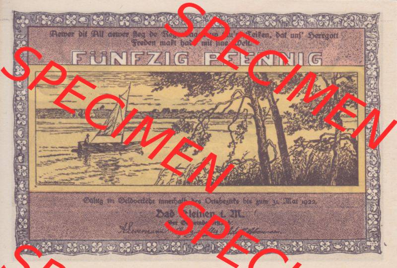 Reutergeld von Bad Kleinen mit Nennwert von 50 Pfennig von 1922 in Mecklenburg-Strelitz, in der