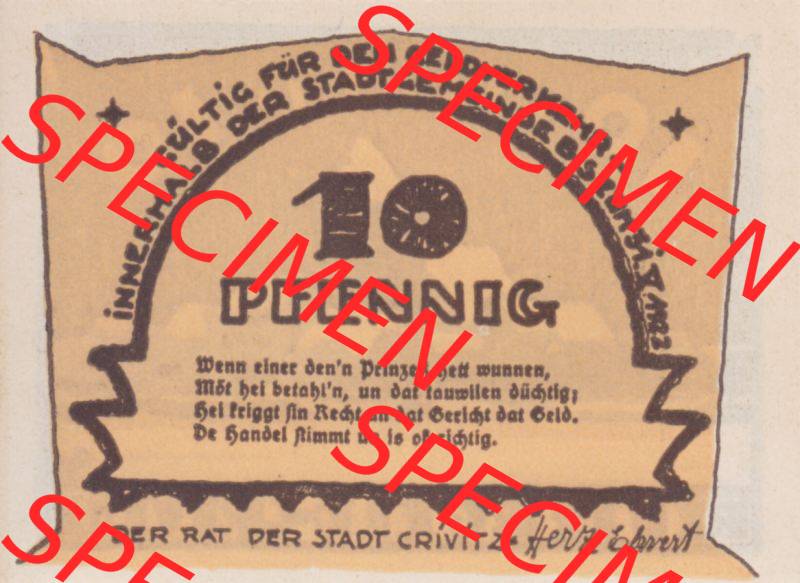 Reutergeld mit 10 Pfennig Nennwert von der Stadt Crivitz der Stadtgemeinde Crivitz,
