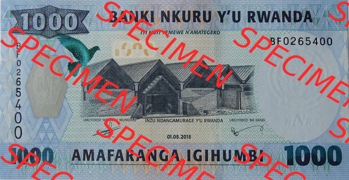 Hier die 1000 Franc Banknote von Rwanda vom 01.05.2015, also aus 2015
