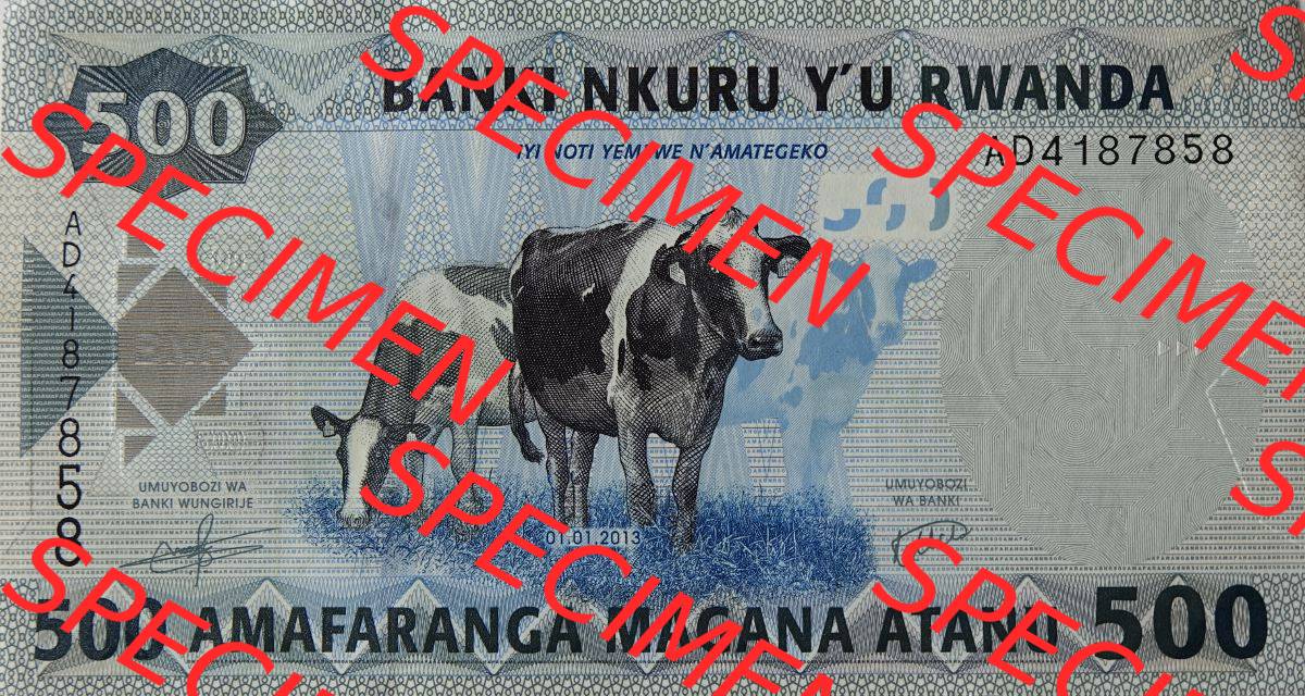Und hier der Geldschein bzw. die Banknote von Rwanda zu 500 Francs vom