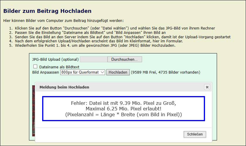 Fazit: Verkleinert eure Bilder vor dem Upload auf unter 3000x3000 Pixel damit EMBMV die
