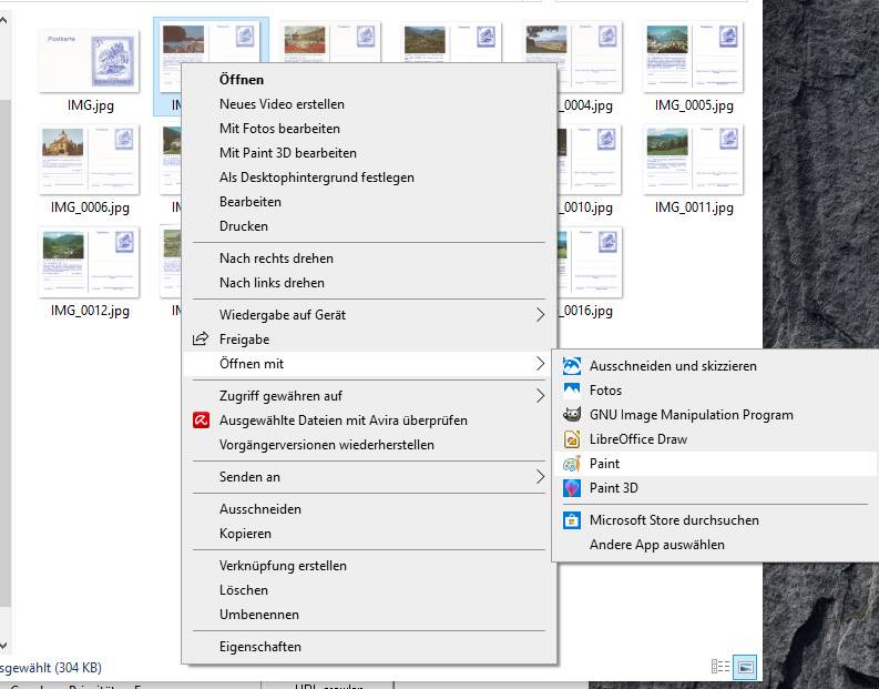 Bild in Explorer von Windows 10 auswählen und Paint starten: