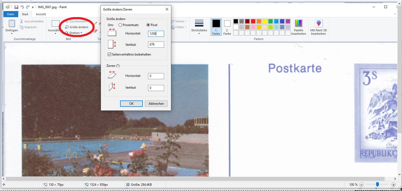 Bild in der Größe verändert wird. Das Bild ist jetzt auf 1200 Pixel