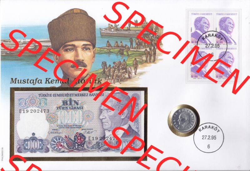 Ich habe jetzt mal 2 Banknotenbriefe aus der Türkei bei Ebay gekauft, den ersten habe ich im ersten Beitrag hochgeladen und der zweite ist noch unterwegs. Der Banknotenbrief der Türkei enthält eine 1000 Lire Banknote, 4x 50000 Lire Briefmarken und sogar noch eine 10 Lira Münze.