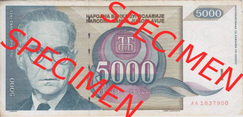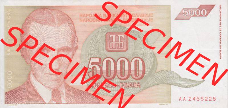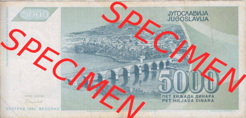 Bundesrepublik Jugoslawien 1992 5000 Dinar