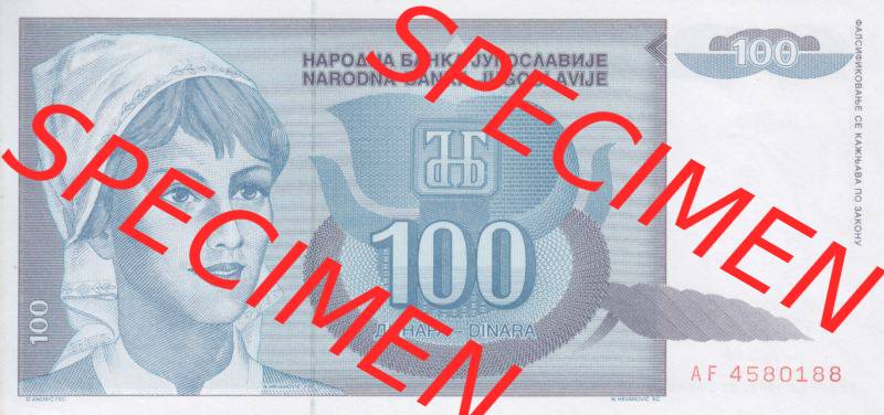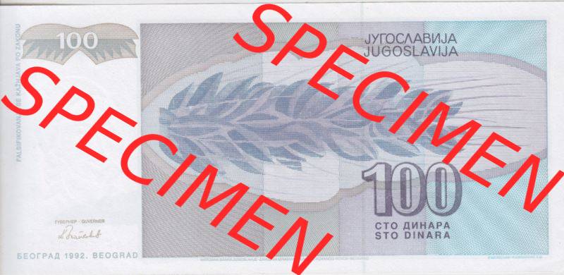 Bundesrepublik Jugoslawien 1992 100 Dinar
