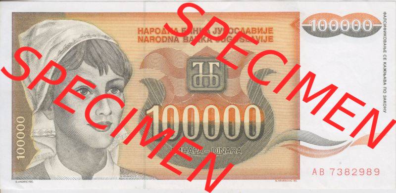 Bundesrepublik Jugoslawien 1993 100000 Dinar