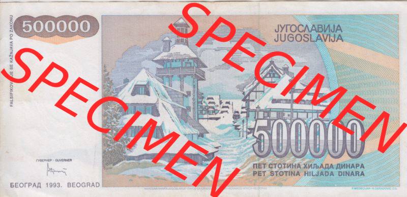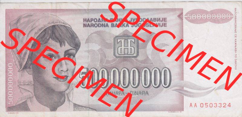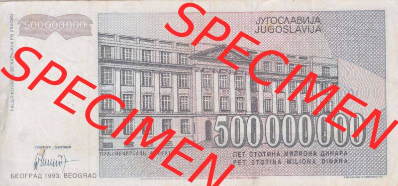 Bundesrepublik Jugoslawien 1993 500.000.000 Dinar, bzw 500 Mio. Dinar mit einer