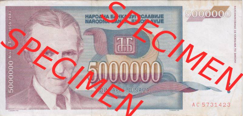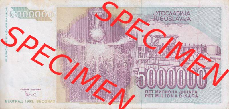 Bundesrepublik Jugoslawien 1993 5.000.000 Dinar bzw 5 Mio. Dinar und mit
