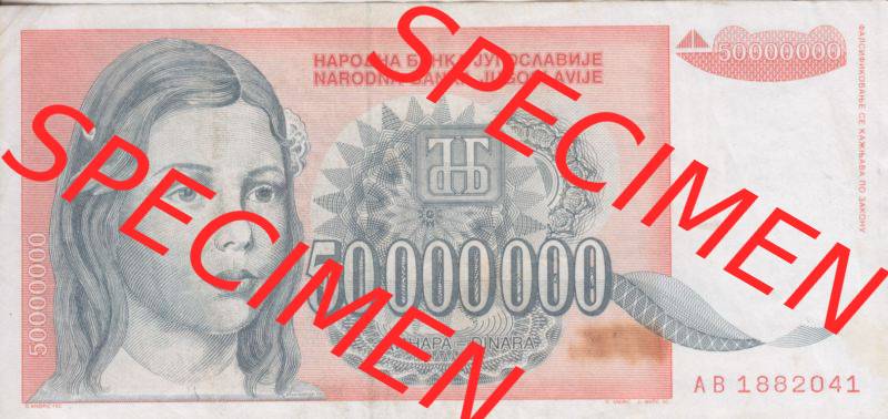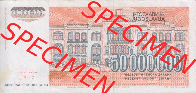 Bundesrepublik Jugoslawien 1993 50.000.000 Dinar, bzw. 50 Mio. Dinar,