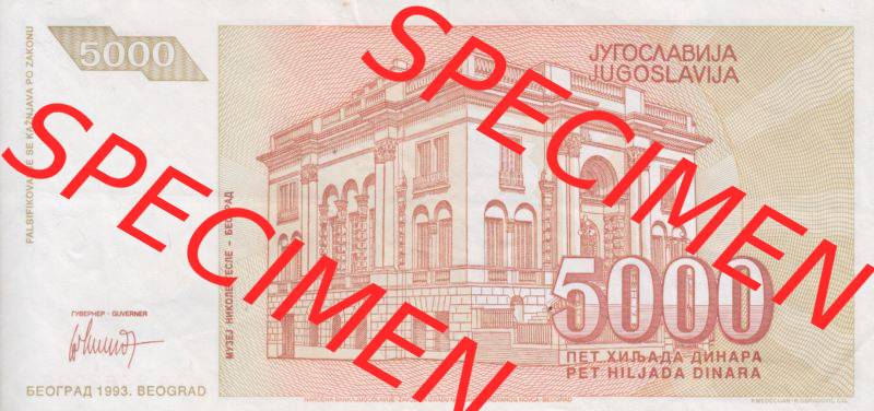 Bundesrepublik Jugoslawien 1993 5000 Dinar und wieder der Typ von der Zweiten Banknote dieses