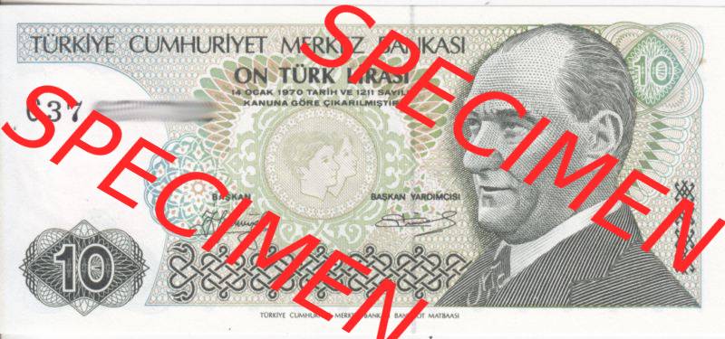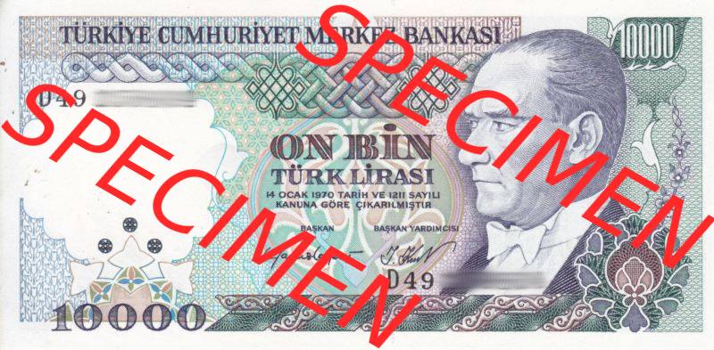 Wert Banknoten der Türkei von 10 bis 10000 Lira Geldscheine 1970 #12471 (Einzelbeitrag)