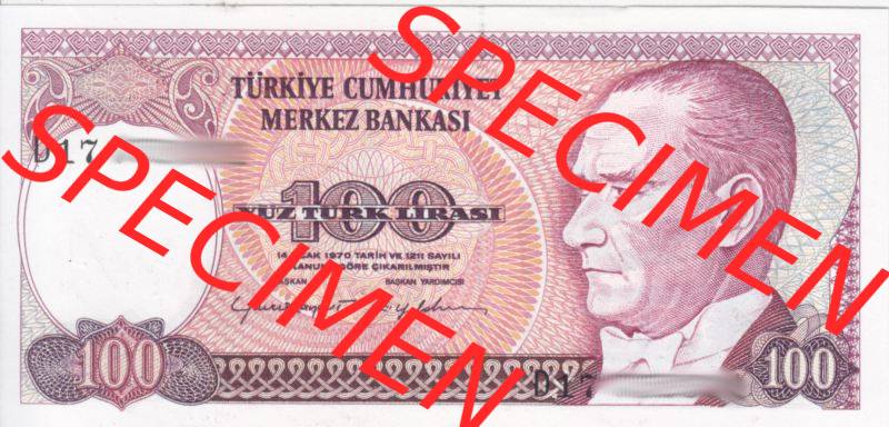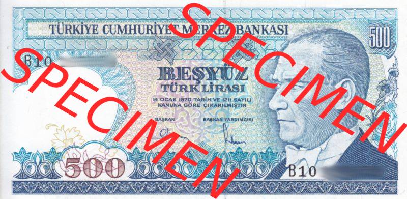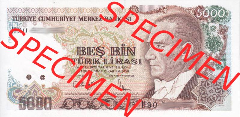 Geldscheine sind vom 14. Januar 1970, auf türkisch 14 OCAK 1970, anscheint von