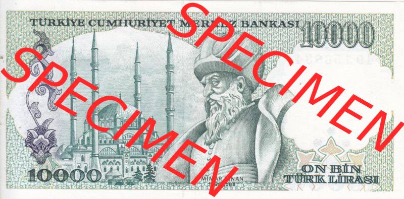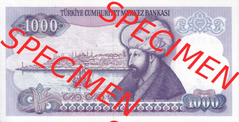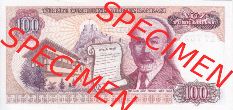 (türkische Bank), dann folgt der Nennwert als Zahl und als Wort, darunter