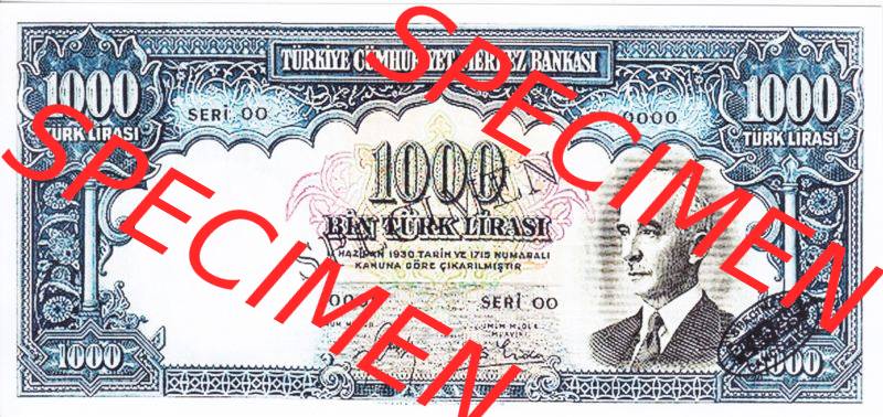 Hier weitere teuere türkische Banknoten der Türkei in Europa im Zeitraum von