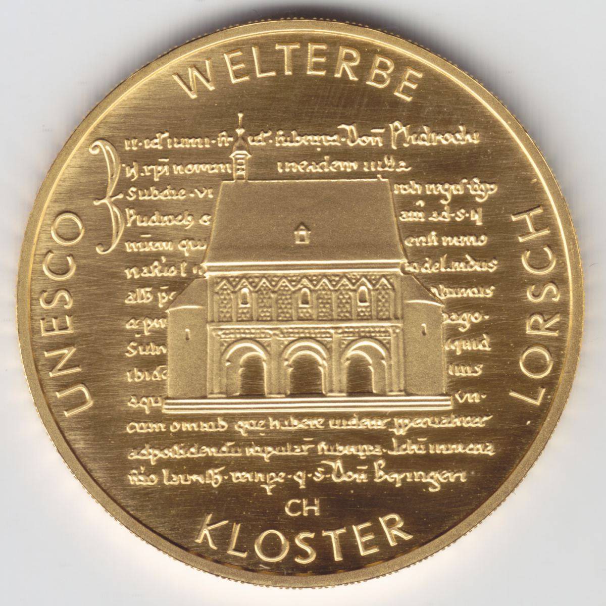 Die Goldmünze 100 Euro Kloster Lorsch von 2014 besteht aus 1/2 Unze Gold. 1/2 Unze Gold