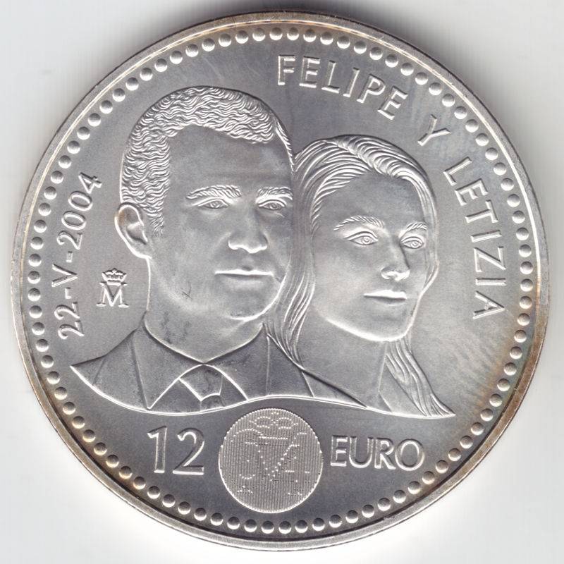 Die Silbermünze von 2004 erinnert an die Hochzeit des spanischen Thronfolgers. Seine