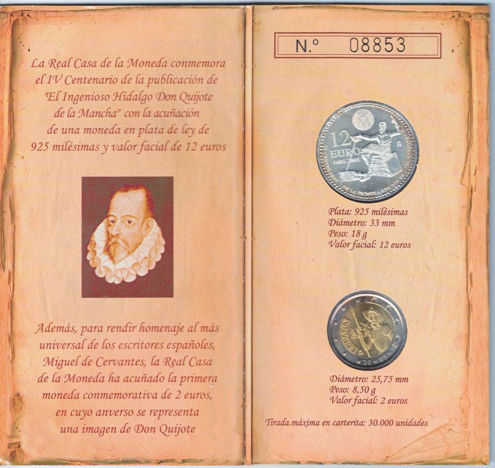 12 Euro Gedenkmünze bzw. Sondermünze Spanien 2005 zum Thema Don Quichotte mit 2