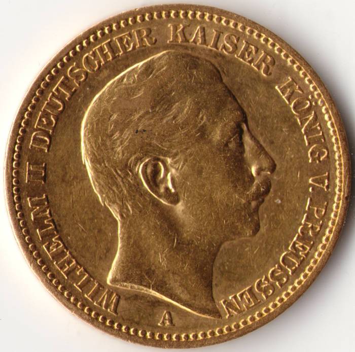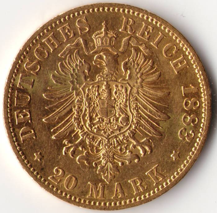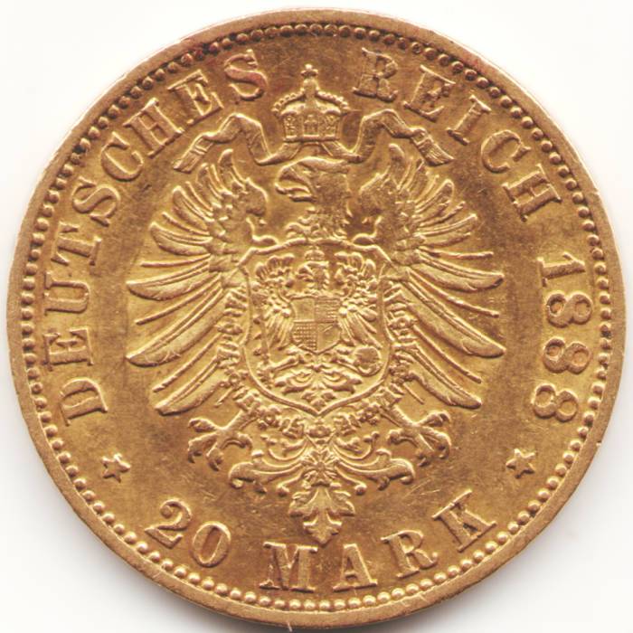 Die von 1888 bis 1913 im Deutschen Kaiserreich geprägte Goldmark zu 20 Mark