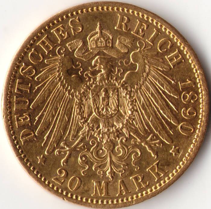 Die 20 Mark Goldmünzen vom Deutschen Kaiserreich besitzen ein Gewicht von 0.2304 Unzen