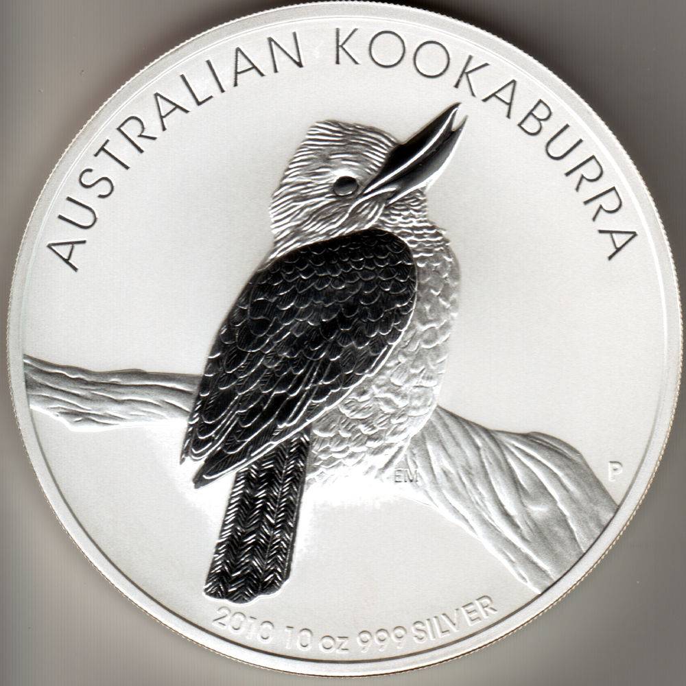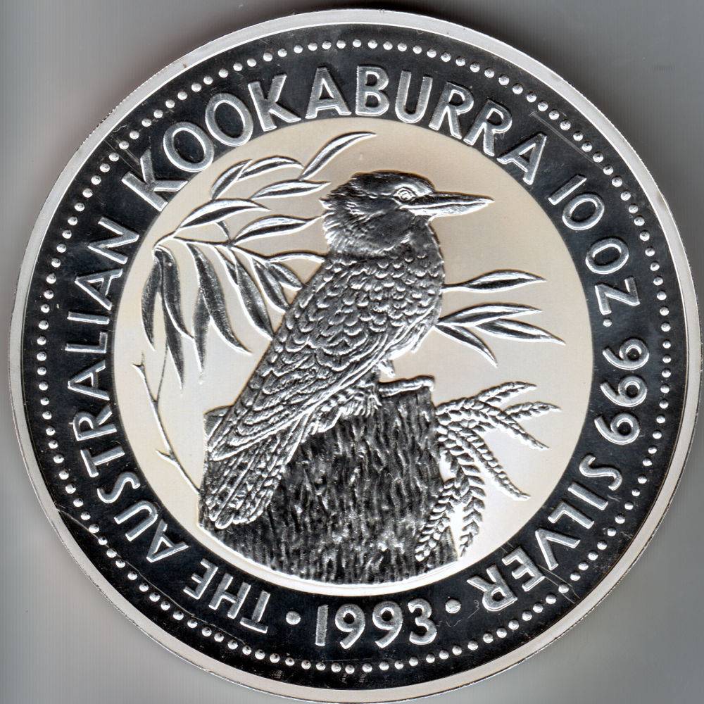 Kookaburra Silbermünze erscheint jedoch seit 1991 ununterbrochen auch in einer 10 Unzen-Version
