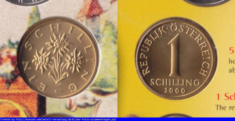 Münze zu 1 Schilling von Österreich, hier im KMS vom Jahr 2000, welcher auch