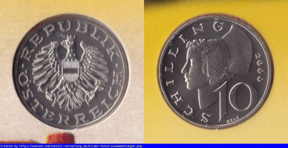 10 Schilling Münze von Österreich aus dem KMS/Kursmünzensatz 2000 dem
