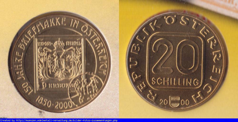 Prägejahr 2000 und den Schriftzug '20 Schilling'. Dieses Münzen-Motiv